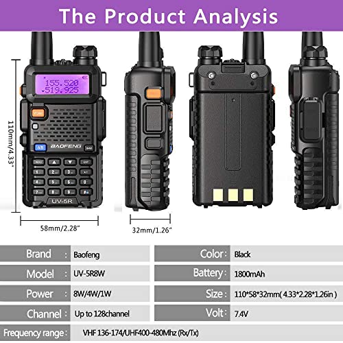 BaoFeng UV-5R 8W High Power Two Way Radio Ham Radio Dual Band Portable Radio Tri-Power Handheld Walkie Talkies
